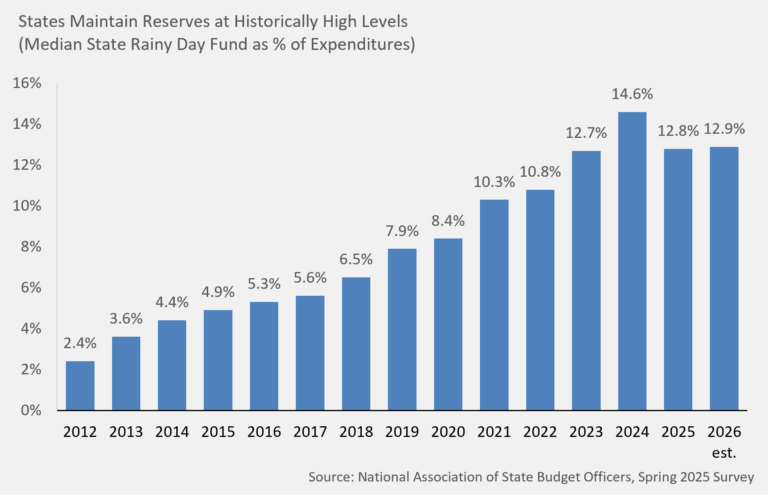 "Mirroring the resilient national economy, State tax revenues have followed a relatively positive trend, particularly after a short-lived decline in late 2023 through early 2024. The trailing-twelve-month growth rate of +2.4% as of August 2025 is not remarkable, but more than strong enough to support essential budgetary needs..."