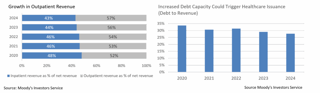 Management teams are utilizing various strategies to enhance revenue streams. Increasing outpatient volumes remains a key focus to improve convenience and access to patients while generating a predictable and cost-effective revenue source for providers. Many systems have had success in renegotiating higher commercial insurance rates and new state-directed payment approvals will temporarily boost Medicaid funding in some States.