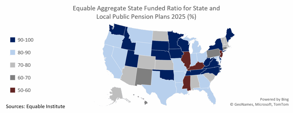 - Equable Institute, a bipartisan nonprofit, tracks pension data covering 253 statewide and municipal retirement systems. Based on data through 9/30, Equable anticipates that the aggregate funded ratio for state and local pension plans is projected to improve for a third straight year to 83.1%. This is an improvement from each of the last three years, reported at 75.4% in FY 22, 75.4% in FY 23 and 78.1% in FY 24.