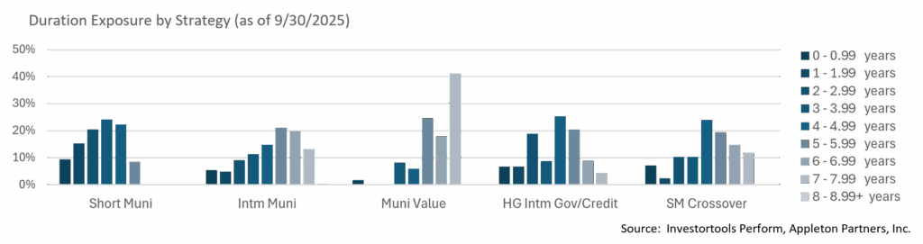 - GARVEEs – Some Appleton clients have exposure to the GARVEE sector, and we remain confident in our holdings. Federal Highway Administration distributions continued for GARVEE issuers during past shutdowns, as the funding program is a multi-year authorization act that has been granted special “Contract Authority” (funding currently authorized through 2026). Some GARVEEs also deposit debt service 12 months in advance, others have reserve funds, and some are secured by a backup pledge of revenues by the issuing State.