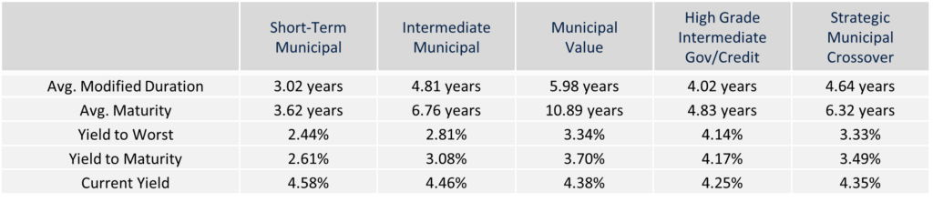 - Military, Section 8, and Public Housing – Debt service is typically covered by federal grants or appropriations that could be interrupted. Most issuers are small, there is single site risk, and military debt is required to be issued as taxable. We do not have exposure to these sectors.